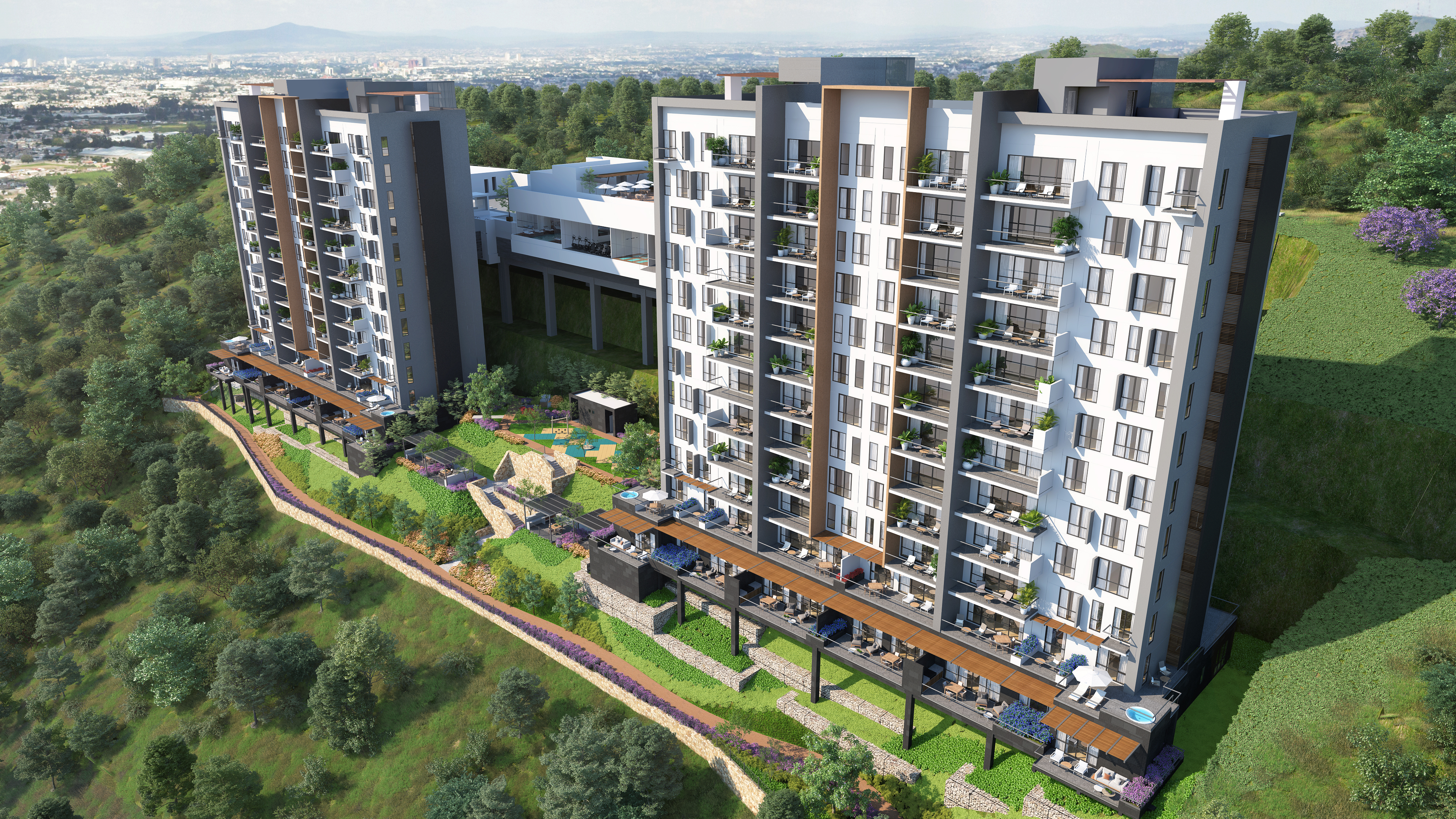 id Bellavista consta de torres que albergan departamentos, todos cuidadosamente distribuidos con el objetivo explícito de preservar la privacidad de cada residente.